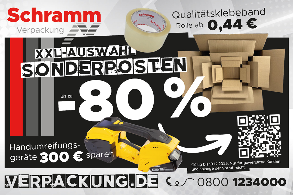 Jetzt zugreifen: Sonderposten bis zu 80 % reduziert und 300 Euro Rabatt auf Handumreifungsgeräte. Nur für kurze Zeit – hochwertige Verpackungen zu unschlagbaren Preisen.